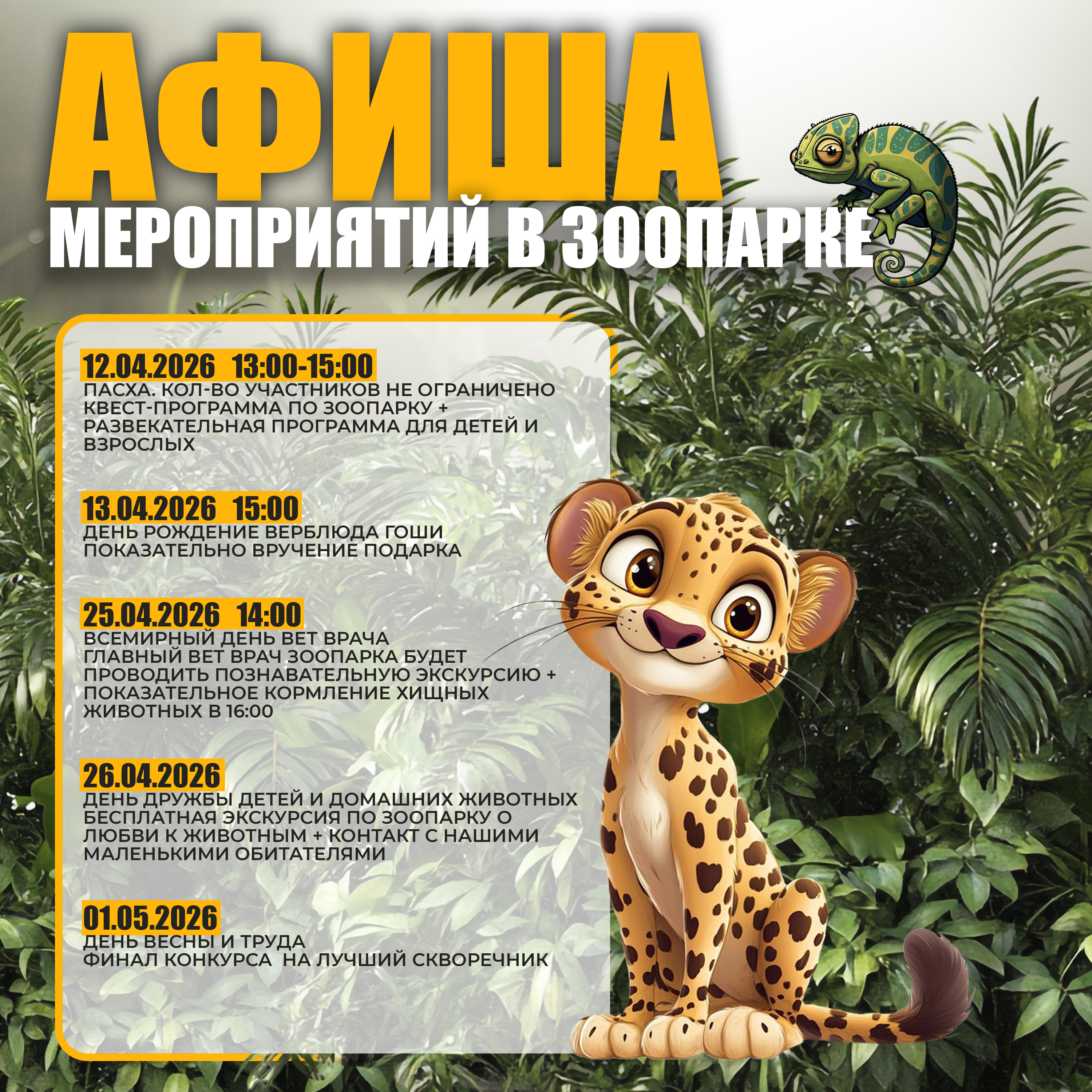 Афиша мероприятий в зоопарке